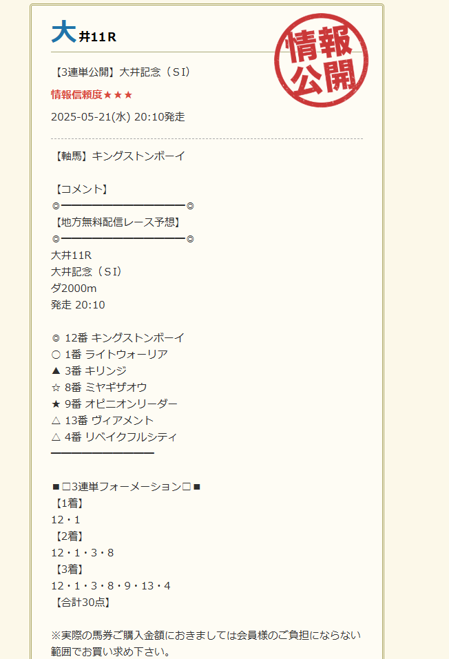 なんちゅー情報力!これが毎日無料予想で貰えるなんて!