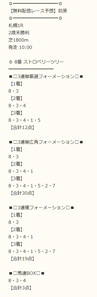 8月23日(土)無料予想的中