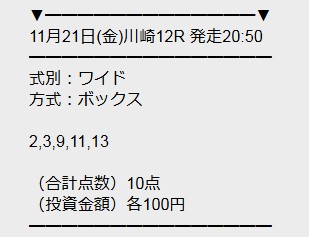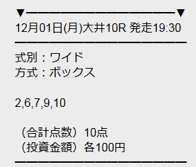 1日(月)大井10Rの無料予想でワイド3種完全的中!