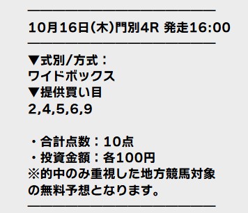 無料予想買い目点数10点で2万5400円獲得!