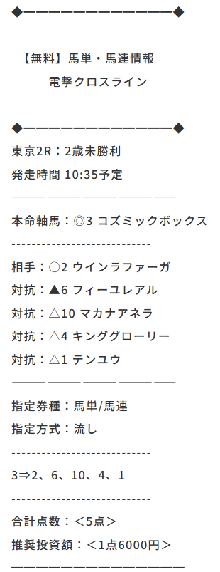 少頭数レースの無料予想で馬連と馬単を買い目点数6点ずつで的中