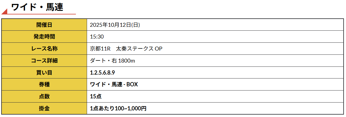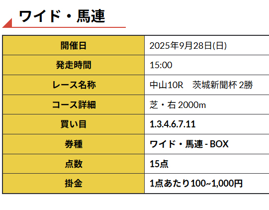 15日(月)の無料予想阪神10Rで馬連・ワイドのダブル的中
